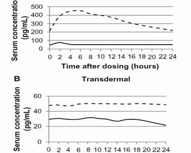 A transdermal patch also allows for consistent delivery over time instead of delivering a full dose all at once, such as occurs with a pill where you end up hoping the safety and effectiveness are optimal for the patients, see the right picture .